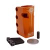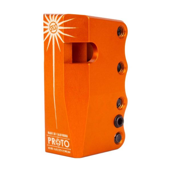 Eight years after inventing the world’s first and best Standard Compression System™ (SCS™), PROTO is proud to introduce the next generation of SCS™. The Sentinel SCS™ is the most technically advanced Standard Compression System™ ever created. Coming in at 3.5″ tall, it offers a full 2″ of handlebar support to accommodate the taller bars we are seeing become more prominent which is over 30% more support than a 3″ SCS™. It also features larger 8mm bolts with 6mm allen drives and an offset slot providing 25% more threads for the new larger hardware to tighten into allowing for increased torque and decreased chance of stripping giving it the ability to stay tighter, longer than any other SCS™ on the market. To top it off, despite being half an inch taller, increased weight was not an issue with its tapered top and base and two cutouts that removed unnecessary material and weight. There is also a brand-new feature called the Spreader-Bolt which can be used opposite of the 4 main clamp bolts to open the clamp for easy installation and removal, totally eliminating the need for the “penny trick”. The SCS™ logo is placed symbolically as the “third-eye” of the Sentinel in the center of a crown of thorns representing enlightenment and salvation from the ways of the past and guarding the future of scooter design.