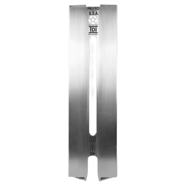 PROTO TDI™ DEX™ are the world’s first decks to feature Flush Mount Technology™. FMtech™ allows you to trash your old “cone” shaped pegs which are notorious for bending axles and being incompatible with wider decks and allows you to start using straight Cylindrical Pegs and PROTO Deck-Ends™ which provide superior reinforcement all the way to your Drop-Outs. With Flush Mount Technology, the Peg/Deck-End™ Diameter is now standardized so the Drop-Outs of the deck can perfectly contoured to fit your Pegs and Deck-Ends™ which allows the full width of your deck extrusion to provide an additional level of support for Drop-Out impact.