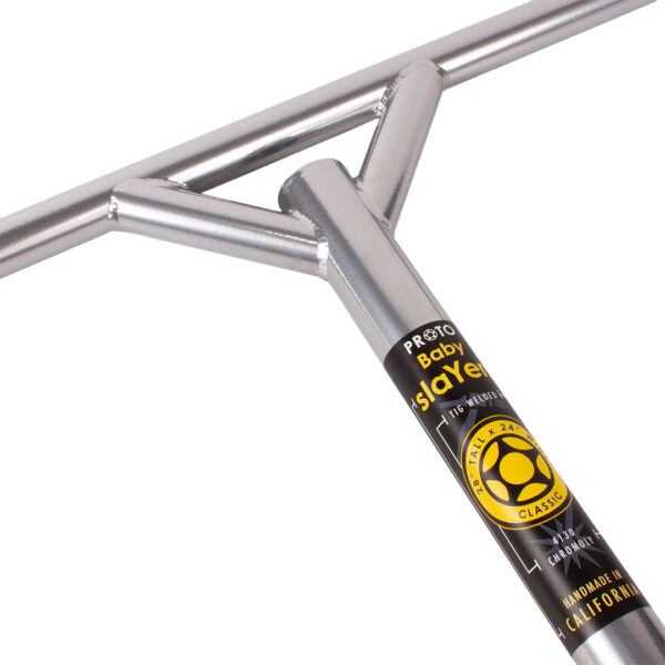 The Baby brother of the handlebar that defined freestyle scooter handlebars is now available. We took the design all the way back to its Classic roots with the smooth clean gussets TIG welded out of 4130 chromoly and 100% Manufactured in San Diego, California, USA, as always! 1-1/4” column, SCS, ICS & IHC compatible. Available in Flat Black and RAW Clear.