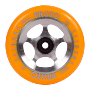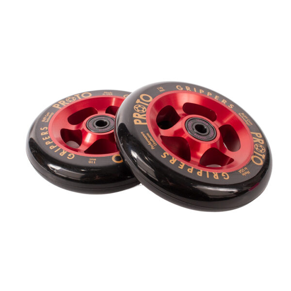 Gripper wheels are some of the fastest wheels on the market. PROTO Wheels are made in the USA and have an anodized core for durability. Featuring BUFF Core Technology to reduce dehubbing. All PROTO Scooter Wheels come with bearing removal slots for taking bearings out with ease. These wheels come with High Quality PROTO Murders Bearings Pre-installed. PROTO – STICKERS INCLUDED. Limited 90-day warranty.