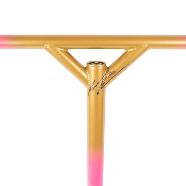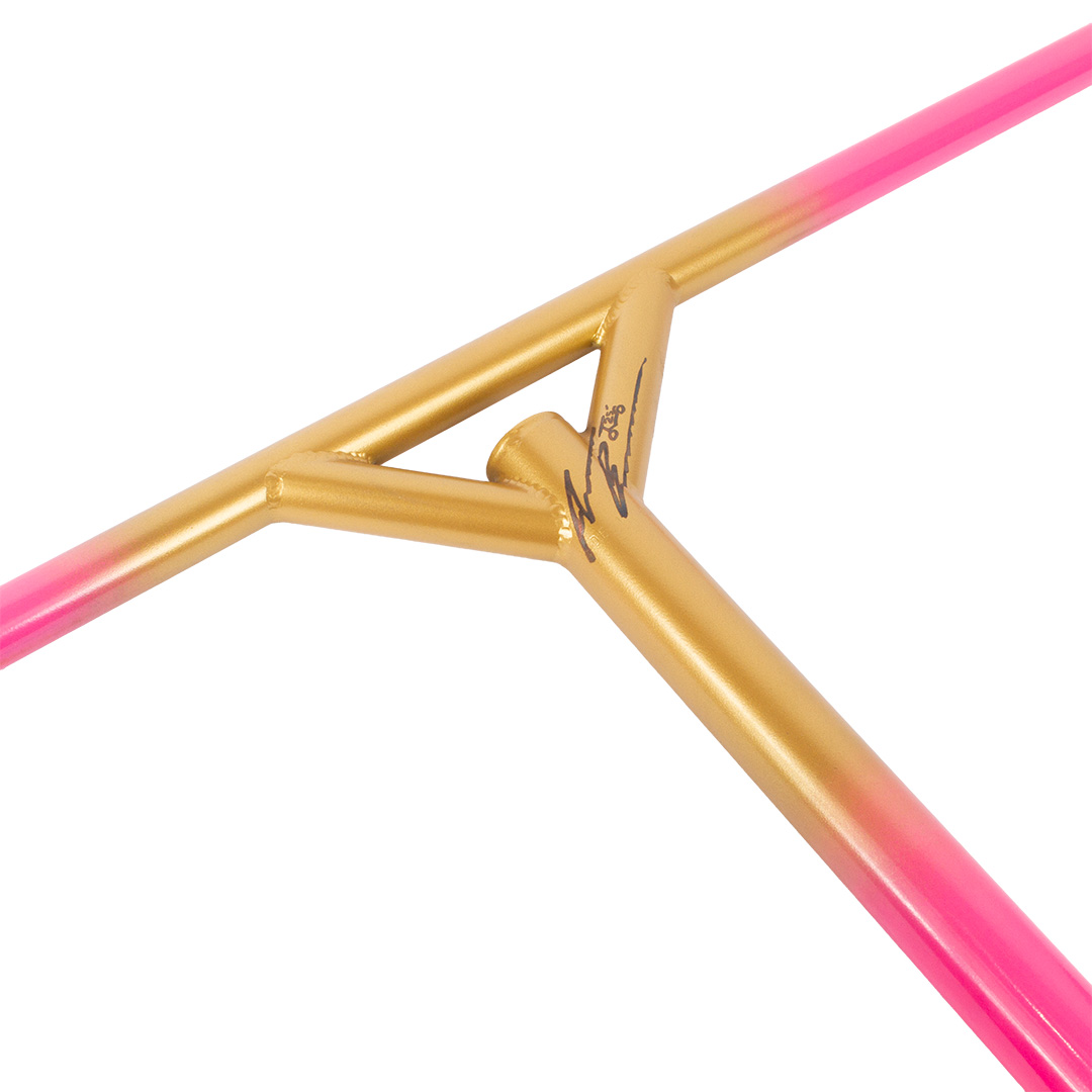 These gold full cores began life as the PROTO 10-Year Anniversary wheel in 2018 but were not completed in time for the Anniversary due to circumstances beyond our control. After that there was really no appropriate reuse for these cores… aside from a re-release of the Andrew Broussard Sigs. Andrew was hesitant for years about using these cores for this purpose because he spends exponentially more time manufacturing scooter parts on the Factory Floor than he does riding them and historically signature parts are reserved for elite, actively performing, riders. That was, until he came to the realization that he is an artist, scootering is his medium and he will sign his work.